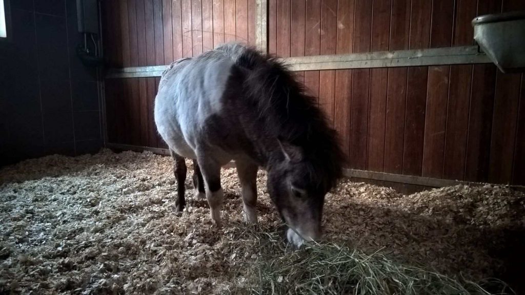 Das war’s dann mit der Karriere als Deckhengst und weiteren Fohlen von Rusty… er wurde heute in der Klinik kastriert. Hier noch sehr wackelig und gerade erst aus der Aufwachbox in den Stall gebracht, wo aber das lang ersehnte Abendessen schon wartete.
