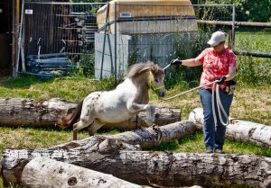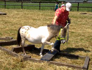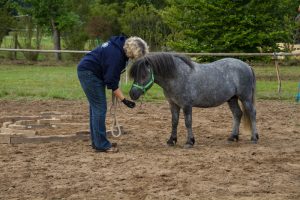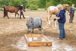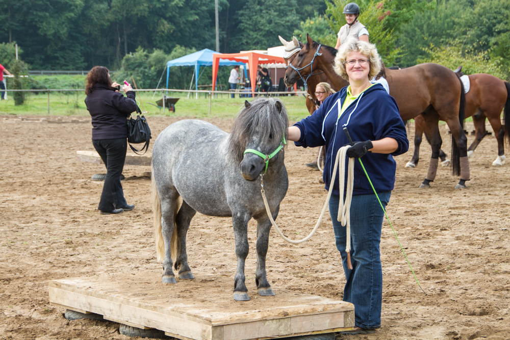 Alles andere war, auch unter Einsatz von Pony-Doping (Leckerli), überhaupt gar kein Problem, weder die anderen 15 anwesenden Pferde, noch die fremde Umgebung. Brücke, Wippe, Wackelbrett, mehrstufiges Podest, Flattervorhang – wie ein Vollprofi!